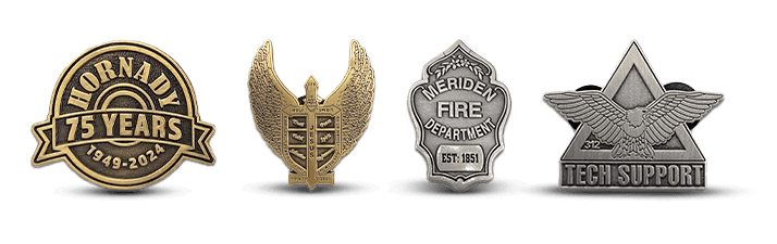 If you want a classic pin style that really shows off the character of the metal finish, Die Struck Pins are the perfect choice. Your design is stamped into the base metal, then plated with your choice of plating— gold, silver, or black nickel .